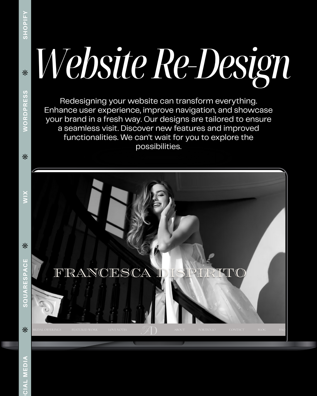 Are you looking for a new website or a re-vamp? Is your current website still looking like it was built in the 1900’s? Does it still represent your services, are you getting leads from it? If you answered No! Let’s chat.